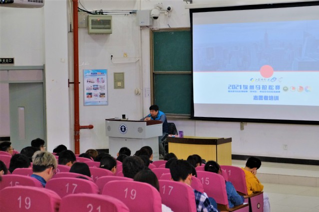 培训会上,胡歆贺老师简要介绍了马拉松赛事的概念、由来、各种专业术语以及马拉松精神等。他详细解说了徐州马拉松赛事的发展历程以及本次志愿者工作的基本流程和主要任务,结合志愿实际情况给同学们普及了志愿者应具备的礼仪规范、服务规范与安全意识,着重强调了突发事件的处理方案。