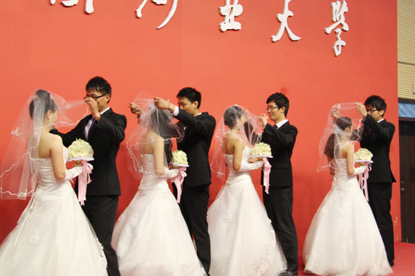 致辞后,葛世荣校长逐一为每一对新人证婚,并颁发结婚证和证婚词。